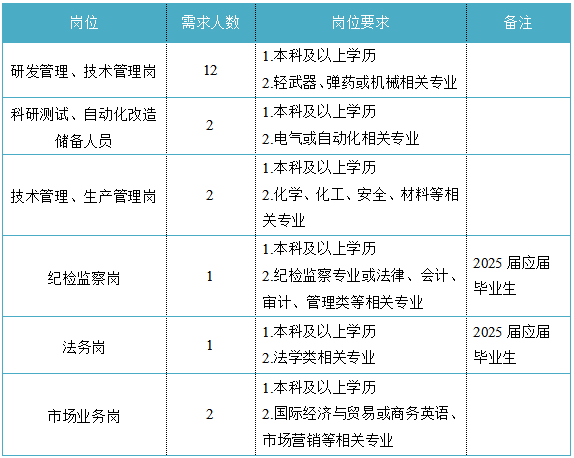 福建省機電(控股)有限責任公司(福建省國防科技工業(yè)公司)是由原省國防科工辦所屬企業(yè)為主,原省機械廳所屬企業(yè)劃入組建的省國資委出資的國有企業(yè),現(xiàn)有全資、控股和參股企業(yè)48家。 在閩唯一一家地方軍工企業(yè);民爆物品生產(chǎn)與銷售資質、軍品科研與生產(chǎn)資質、硝酸銨生產(chǎn)與銷售資質、營業(yè)性爆破作業(yè)單位一級資質、礦山工程施工總承包一級資質、環(huán)保工程專業(yè)承包三級資質;國家甲級設計院,擁有工業(yè)與民用建筑工程設計、咨詢、工程監(jiān)理等綜合資質;華東地區(qū)最大的硝酸銨生產(chǎn)企業(yè)... 省級重點實驗室 1個 省級工程技術研究中心 2個 省級企業(yè)技術中心 3個 省級技能大師工作室 2個 五險二金 帶薪年假 工會福利 健康體檢 午餐補貼 通訊補貼 文體活動...... (一)基本條件 1.具有中華人民共和國國籍,擁護中國共產(chǎn)黨的領導,熱愛社會主義; 2.遵紀守法,無違法違紀違規(guī)等不良記錄; 3.具有良好的身體素質和心理素質; 4.具備符合崗位要求的文化程度和工作能力。 (二)資格條件 應屆高校畢業(yè)生(含:①2025年度應屆高校畢業(yè)生,以畢業(yè)證書落款年度為準,已簽訂就業(yè)協(xié)議、勞動合同、繳交社保等均不影響應屆生身份界定;②2024年度畢業(yè)、具有工作經(jīng)歷及社保繳交記錄的高校畢業(yè)生;③畢業(yè)離校兩年內(nèi)未就業(yè)的高校畢業(yè)生,畢業(yè)證書落款時間應為2023年1月1日以后),具備符合崗位要求的文化程度和工作能力。 聯(lián)系人:吳先生 聯(lián)系電話:0598-3838649 工作地點:福建永安 1.福建海峽科化股份有限公司永安分公司(1人) 聯(lián)系人:田經(jīng)理 聯(lián)系電話:0598-3810809 工作地點:福建永安 2.福建海峽科化股份有限公司福安分公司(1人) 聯(lián)系人:林經(jīng)理 聯(lián)系電話:0593-6330993 工作地點:福建福安 3.福建海峽科化股份有限公司烽林分公司(7人) 聯(lián)系人:吳經(jīng)理 聯(lián)系電話:0598-2792107 工作地點:三明明溪 4.福建海峽科化股份有限公司永春分公司(3人) 聯(lián)系人:賀經(jīng)理 聯(lián)系電話:0595-23989536 工作地點:福建永春 5.福建海峽科化富興建設工程有限公司(7人) 聯(lián)系人:楊女士 聯(lián)系電話:18250589968 工作地點:福建三明 6.福建民化建設工程有限公司(2人) 聯(lián)系人:鄒女士 聯(lián)系電話:13950807836 工作地點:福建省內(nèi) 7.青海青樂化工機械有限責任公司(22人) 聯(lián)系人:李先生 聯(lián)系電話:0972-8655285 工作地點:青海省海東市樂都區(qū) 8.青海海西東諾化工有限公司(4人) 聯(lián)系人:郭先生 聯(lián)系電話:13860516289 工作地點:青海省德令哈市 聯(lián)系人:李先生 聯(lián)系電話:0533-2343718 工作地點:山東沂源 聯(lián)系人:米先生 聯(lián)系電話:15280522275 工作地點:福建邵武 福建省機電沿海建筑設計研究院有限公司(4人) 聯(lián)系人:李女士 聯(lián)系電話:0591-87386017 工作地點:福建福州 福建智和置業(yè)有限公司(2人) 聯(lián)系人:吳先生 聯(lián)系電話:18695719052 工作地點:福建福州 符合崗位招聘條件的應聘者可請將簡歷投遞至指定郵箱:fndic25@163.com;并將郵件標題和簡歷名稱命名為“崗位+姓名+畢業(yè)院校+專業(yè)”。 即日起開始接受報名,截止時間為2024年12月31日。 招聘工作按照簡歷投遞-資格審查篩選-筆試-面試-發(fā)放OFFER-體檢-公示-簽約錄用等程序進行。 資格審查貫穿招聘全過程,在招聘各環(huán)節(jié)若有發(fā)現(xiàn)報考信息不實、條件不符等情形的,一律取消應聘資格,不得進入下一環(huán)節(jié);已經(jīng)錄用的,我司有權解除勞動關系,由此發(fā)生的個人損失由應聘人員自行承擔。 按照招聘條件對應聘人員進行資格審查,擇優(yōu)確定參加筆試和面試人員。審核通過者將通過電話或郵件方式通知,審核未通過者不再另行通知。 公開招聘工作堅持“公開、平等、競爭、擇優(yōu)”的原則,嚴肅紀律,秉公辦事,嚴禁弄虛作假,徇私舞弊,全程接受紀檢監(jiān)察部門和社會的監(jiān)督。報考者有弄虛作假、違紀違規(guī)行為的,一經(jīng)發(fā)現(xiàn),均取消其應聘資格,并將有關情況通報其所在學?;騿挝?。構成犯罪的,依法追究刑事責任。