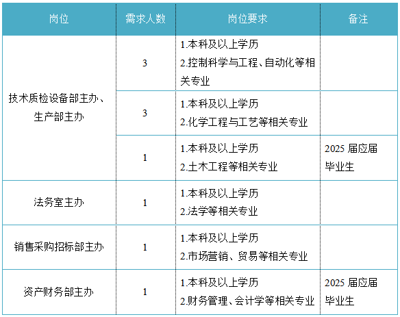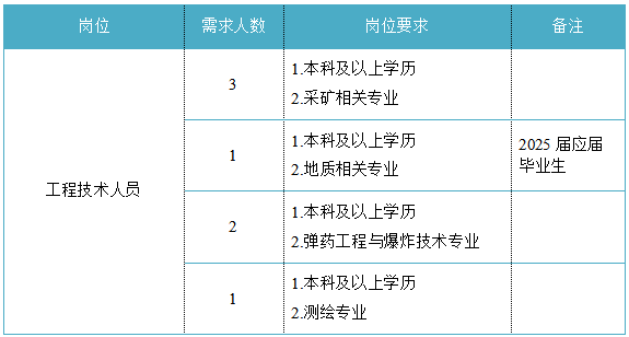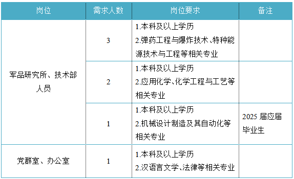 福建省機電(控股)有限責任公司(福建省國防科技工業(yè)公司)是由原省國防科工辦所屬企業(yè)為主,原省機械廳所屬企業(yè)劃入組建的省國資委出資的國有企業(yè),現(xiàn)有全資、控股和參股企業(yè)48家。 在閩唯一一家地方軍工企業(yè);民爆物品生產(chǎn)與銷售資質、軍品科研與生產(chǎn)資質、硝酸銨生產(chǎn)與銷售資質、營業(yè)性爆破作業(yè)單位一級資質、礦山工程施工總承包一級資質、環(huán)保工程專業(yè)承包三級資質;國家甲級設計院,擁有工業(yè)與民用建筑工程設計、咨詢、工程監(jiān)理等綜合資質;華東地區(qū)最大的硝酸銨生產(chǎn)企業(yè)... 省級重點實驗室 1個 省級工程技術研究中心 2個 省級企業(yè)技術中心 3個 省級技能大師工作室 2個 五險二金 帶薪年假 工會福利 健康體檢 午餐補貼 通訊補貼 文體活動...... (一)基本條件 1.具有中華人民共和國國籍,擁護中國共產(chǎn)黨的領導,熱愛社會主義; 2.遵紀守法,無違法違紀違規(guī)等不良記錄; 3.具有良好的身體素質和心理素質; 4.具備符合崗位要求的文化程度和工作能力。 (二)資格條件 應屆高校畢業(yè)生(含:①2025年度應屆高校畢業(yè)生,以畢業(yè)證書落款年度為準,已簽訂就業(yè)協(xié)議、勞動合同、繳交社保等均不影響應屆生身份界定;②2024年度畢業(yè)、具有工作經(jīng)歷及社保繳交記錄的高校畢業(yè)生;③畢業(yè)離校兩年內(nèi)未就業(yè)的高校畢業(yè)生,畢業(yè)證書落款時間應為2023年1月1日以后),具備符合崗位要求的文化程度和工作能力。 聯(lián)系人:吳先生 聯(lián)系電話:0598-3838649 工作地點:福建永安 1.福建海峽科化股份有限公司永安分公司(1人) 聯(lián)系人:田經(jīng)理 聯(lián)系電話:0598-3810809 工作地點:福建永安 2.福建海峽科化股份有限公司福安分公司(1人) 聯(lián)系人:林經(jīng)理 聯(lián)系電話:0593-6330993 工作地點:福建福安 3.福建海峽科化股份有限公司烽林分公司(7人) 聯(lián)系人:吳經(jīng)理 聯(lián)系電話:0598-2792107 工作地點:三明明溪 4.福建海峽科化股份有限公司永春分公司(3人) 聯(lián)系人:賀經(jīng)理 聯(lián)系電話:0595-23989536 工作地點:福建永春 5.福建海峽科化富興建設工程有限公司(7人) 聯(lián)系人:楊女士 聯(lián)系電話:18250589968 工作地點:福建三明 6.福建民化建設工程有限公司(2人) 聯(lián)系人:鄒女士 聯(lián)系電話:13950807836 工作地點:福建省內(nèi) 7.青海青樂化工機械有限責任公司(22人) 聯(lián)系人:李先生 聯(lián)系電話:0972-8655285 工作地點:青海省海東市樂都區(qū) 8.青海海西東諾化工有限公司(4人) 聯(lián)系人:郭先生 聯(lián)系電話:13860516289 工作地點:青海省德令哈市 聯(lián)系人:李先生 聯(lián)系電話:0533-2343718 工作地點:山東沂源 聯(lián)系人:米先生 聯(lián)系電話:15280522275 工作地點:福建邵武 福建省機電沿海建筑設計研究院有限公司(4人) 聯(lián)系人:李女士 聯(lián)系電話:0591-87386017 工作地點:福建福州 福建智和置業(yè)有限公司(2人) 聯(lián)系人:吳先生 聯(lián)系電話:18695719052 工作地點:福建福州 符合崗位招聘條件的應聘者可請將簡歷投遞至指定郵箱:fndic25@163.com;并將郵件標題和簡歷名稱命名為“崗位+姓名+畢業(yè)院校+專業(yè)”。 即日起開始接受報名,截止時間為2024年12月31日。 招聘工作按照簡歷投遞-資格審查篩選-筆試-面試-發(fā)放OFFER-體檢-公示-簽約錄用等程序進行。 資格審查貫穿招聘全過程,在招聘各環(huán)節(jié)若有發(fā)現(xiàn)報考信息不實、條件不符等情形的,一律取消應聘資格,不得進入下一環(huán)節(jié);已經(jīng)錄用的,我司有權解除勞動關系,由此發(fā)生的個人損失由應聘人員自行承擔。 按照招聘條件對應聘人員進行資格審查,擇優(yōu)確定參加筆試和面試人員。審核通過者將通過電話或郵件方式通知,審核未通過者不再另行通知。 公開招聘工作堅持“公開、平等、競爭、擇優(yōu)”的原則,嚴肅紀律,秉公辦事,嚴禁弄虛作假,徇私舞弊,全程接受紀檢監(jiān)察部門和社會的監(jiān)督。報考者有弄虛作假、違紀違規(guī)行為的,一經(jīng)發(fā)現(xiàn),均取消其應聘資格,并將有關情況通報其所在學?;騿挝?。構成犯罪的,依法追究刑事責任。